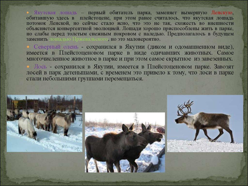 столь суровых условиях. К примеру, те же якутские лошади, несмотря на то, что живут в парке несколько