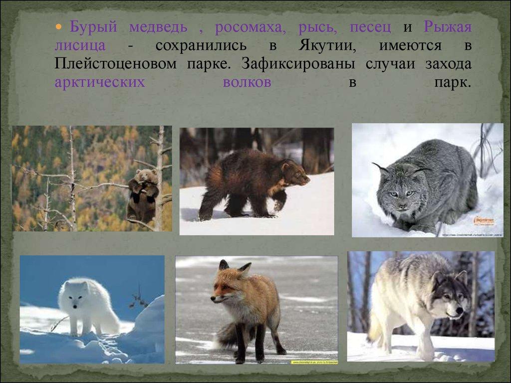 лисы, рыси, росомахи, бобры, куньи (барсуки, ласки, куницы и др.), еноты и