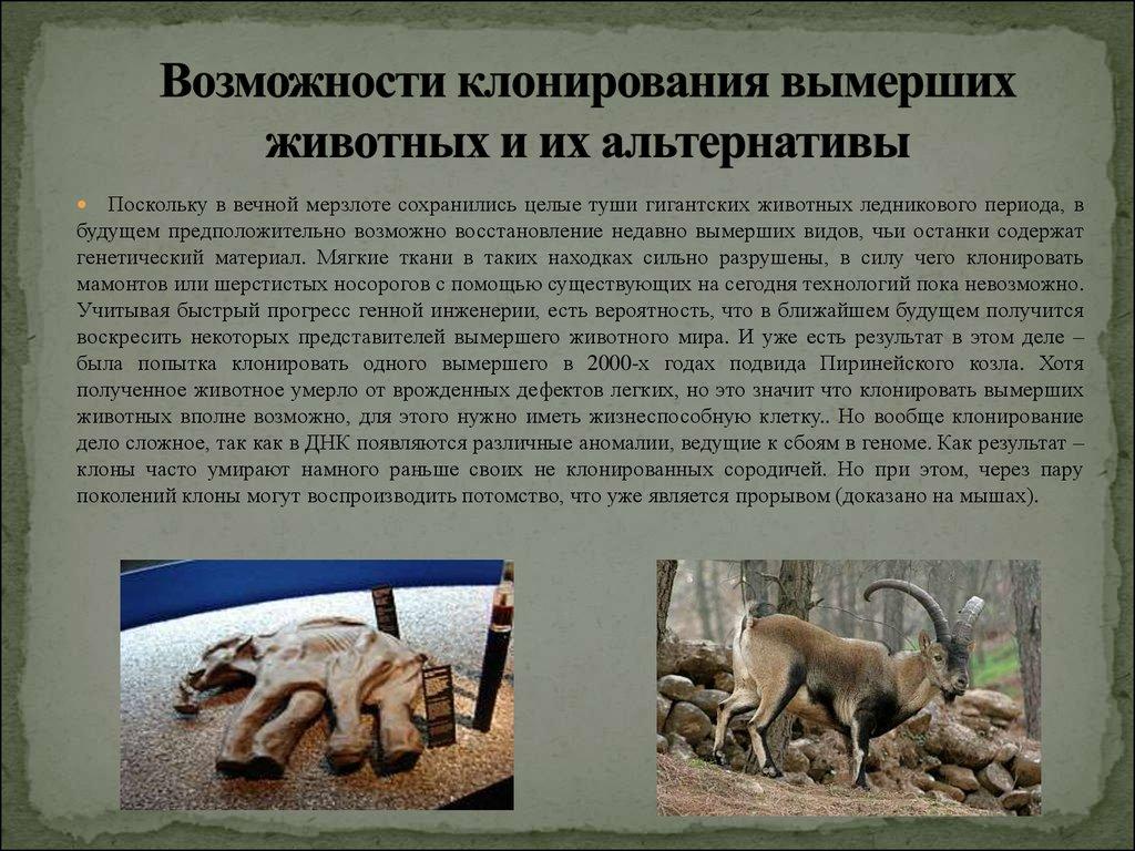 воскресить некоторых представителей вымершего животного мира. И уже есть результат в этом деле –