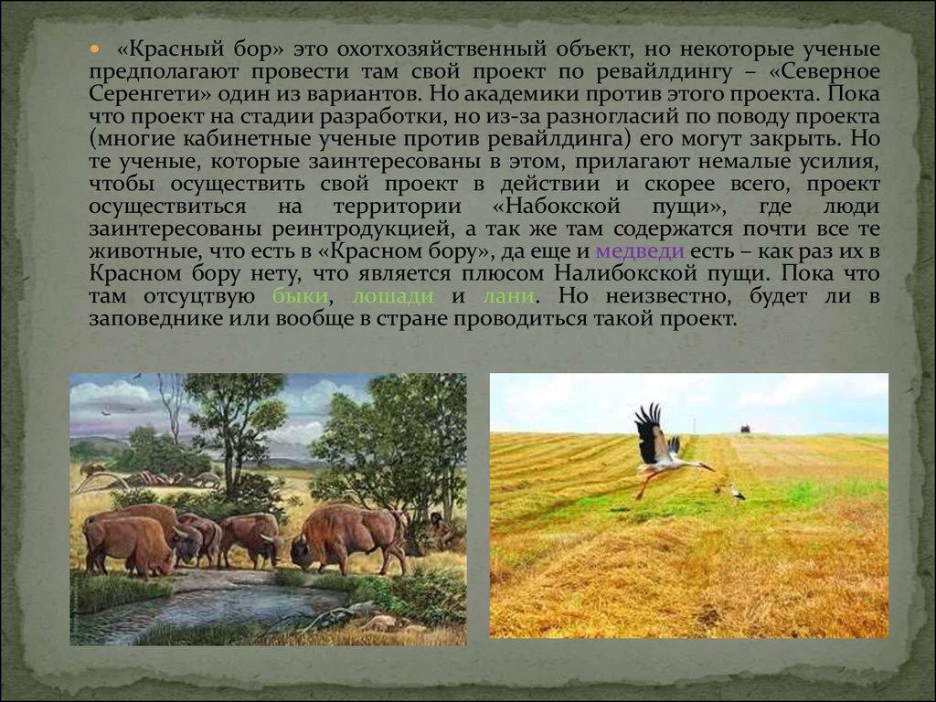 возрождении степей, то, например, мелких животных действительно опасно выпускать без контроля. Что