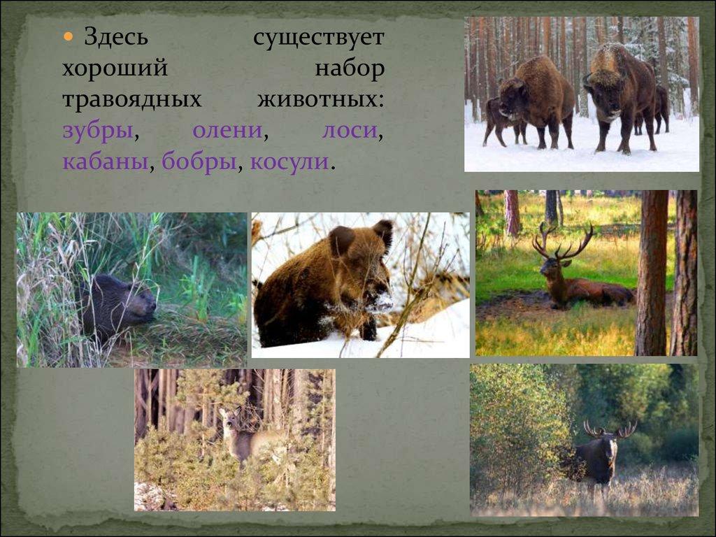 У нас водятся следующие крупные животные: Лоси, кабаны, косули, медведи, волки,