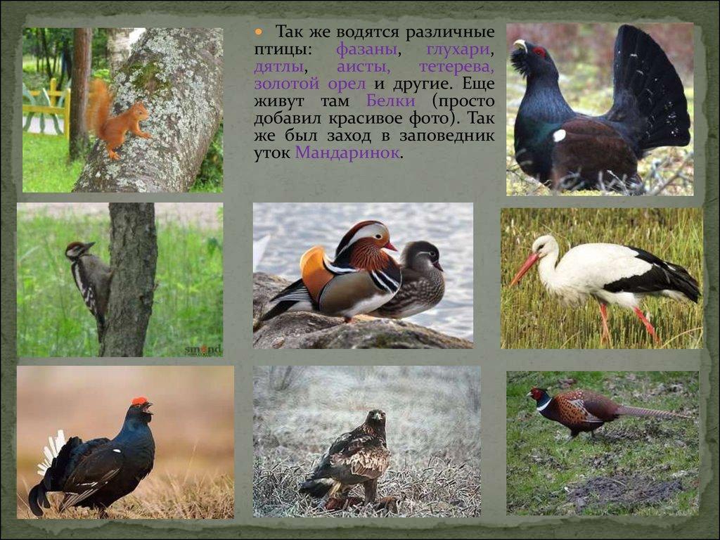 енотовидные собаки. Из птиц в основном гуси, утки, журавли да ястребы (после лесных