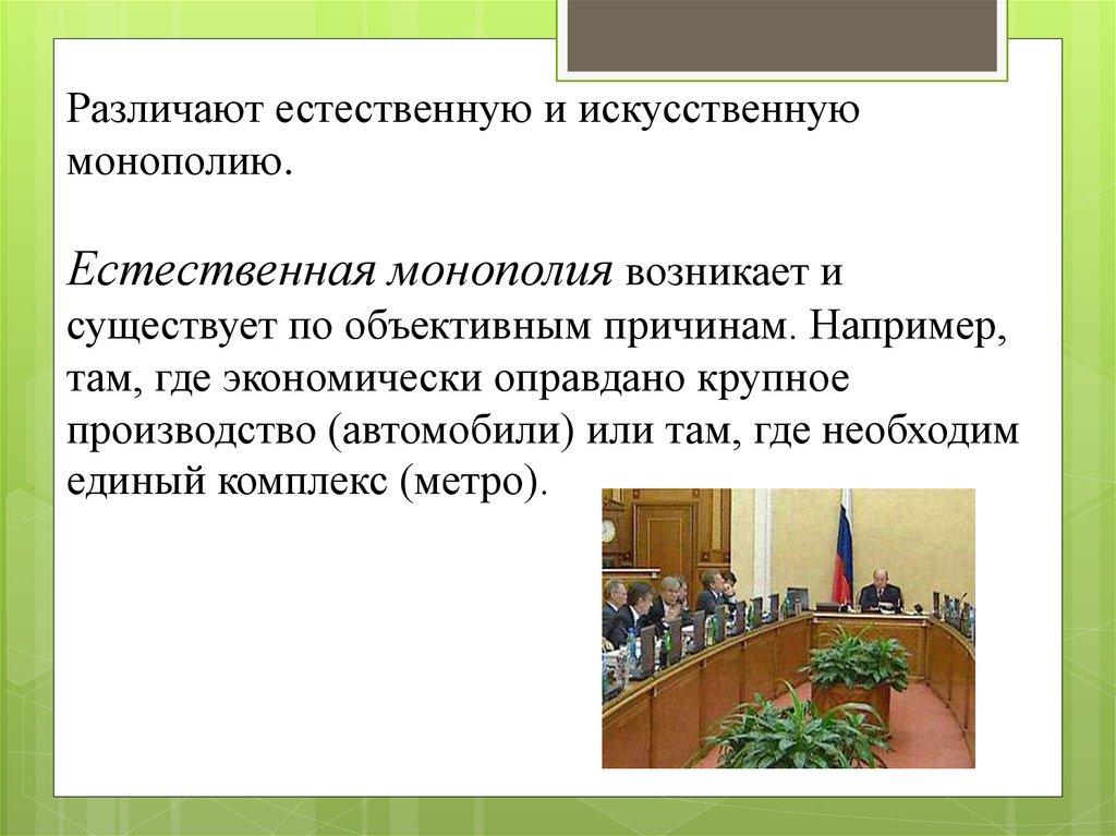 Различают естественную и искусственнуюмонополию.