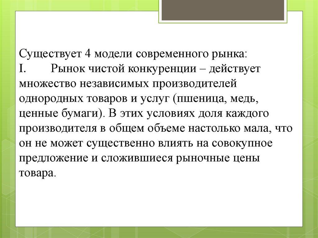 Существует 4 модели современного рынка:I.