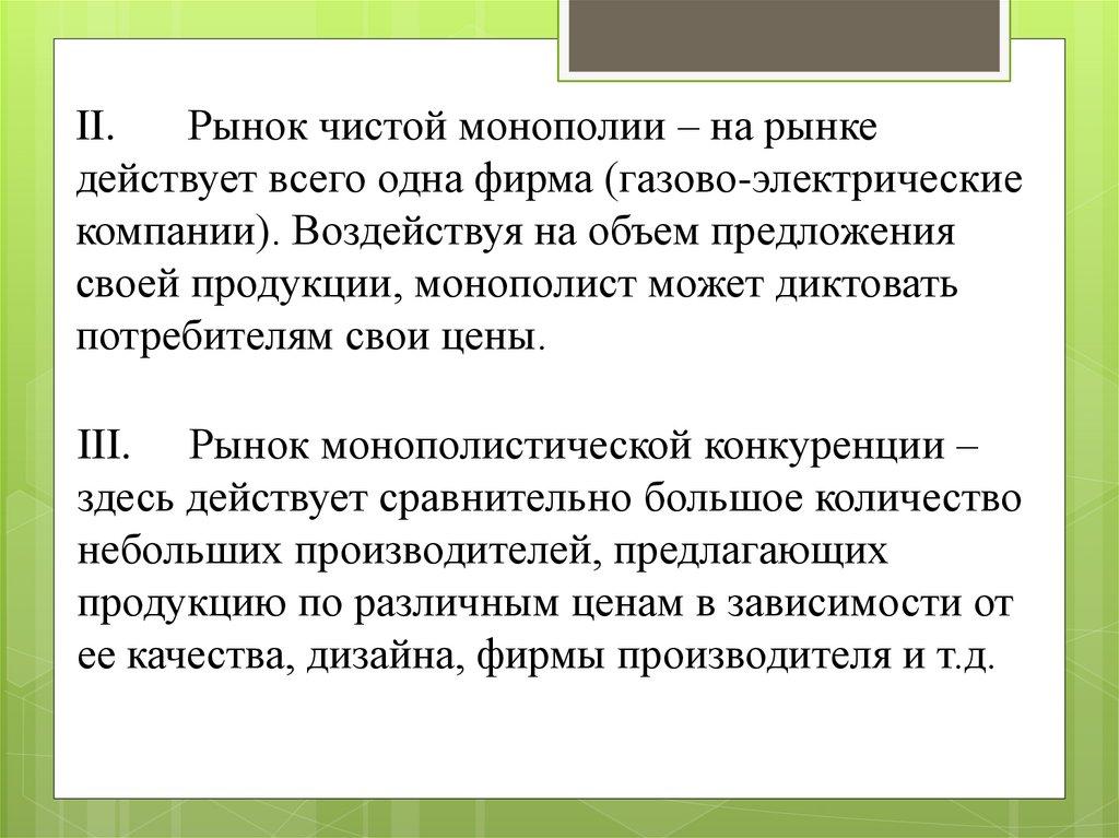 II.Рынок чистой монополии – на рынке