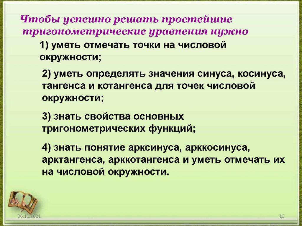Чтобы успешно решать простейшиетригонометрические уравнения нужно