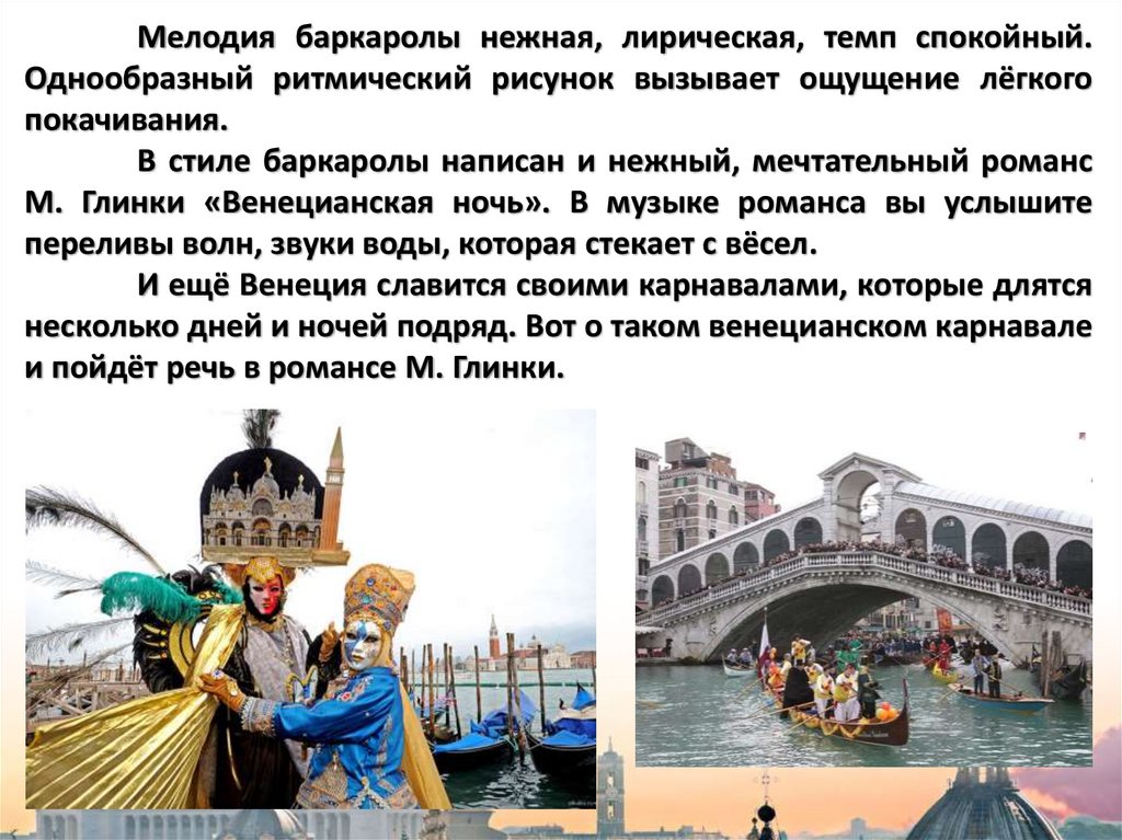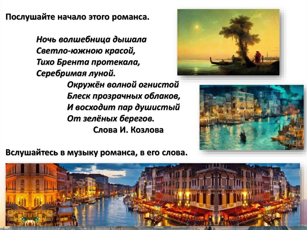 М. Глинки «Венецианская ночь». В музыке романса вы услышите