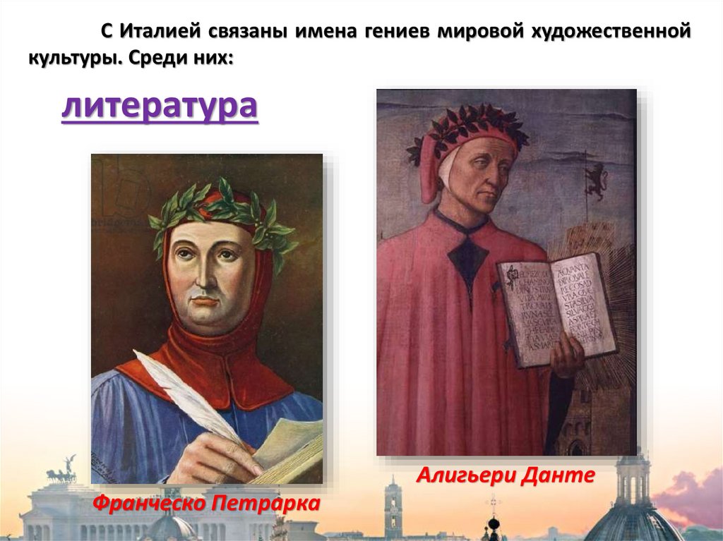 С Италией связаны имена гениев мировой художественнойкультуры. Среди них: