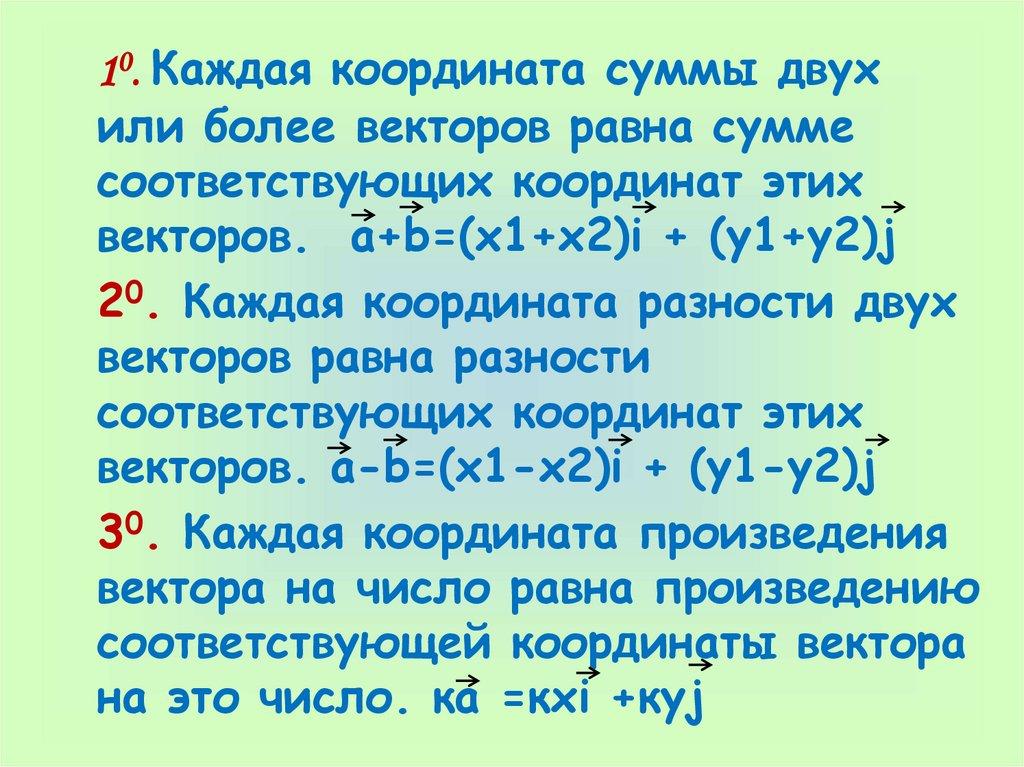 векторов. а+b=(х1+х2)i + (у1+у2)j