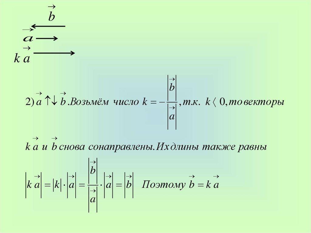 Лемма: Если векторы а и b коллинеарны иа 0, то существует такое число k, что