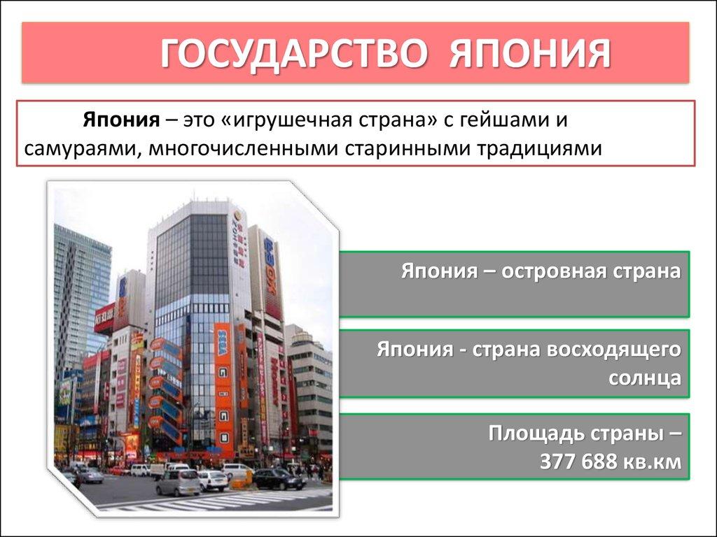 ГОСУДАРСТВО ЯПОНИЯЯпония – это «игрушечная страна» с гейшами и