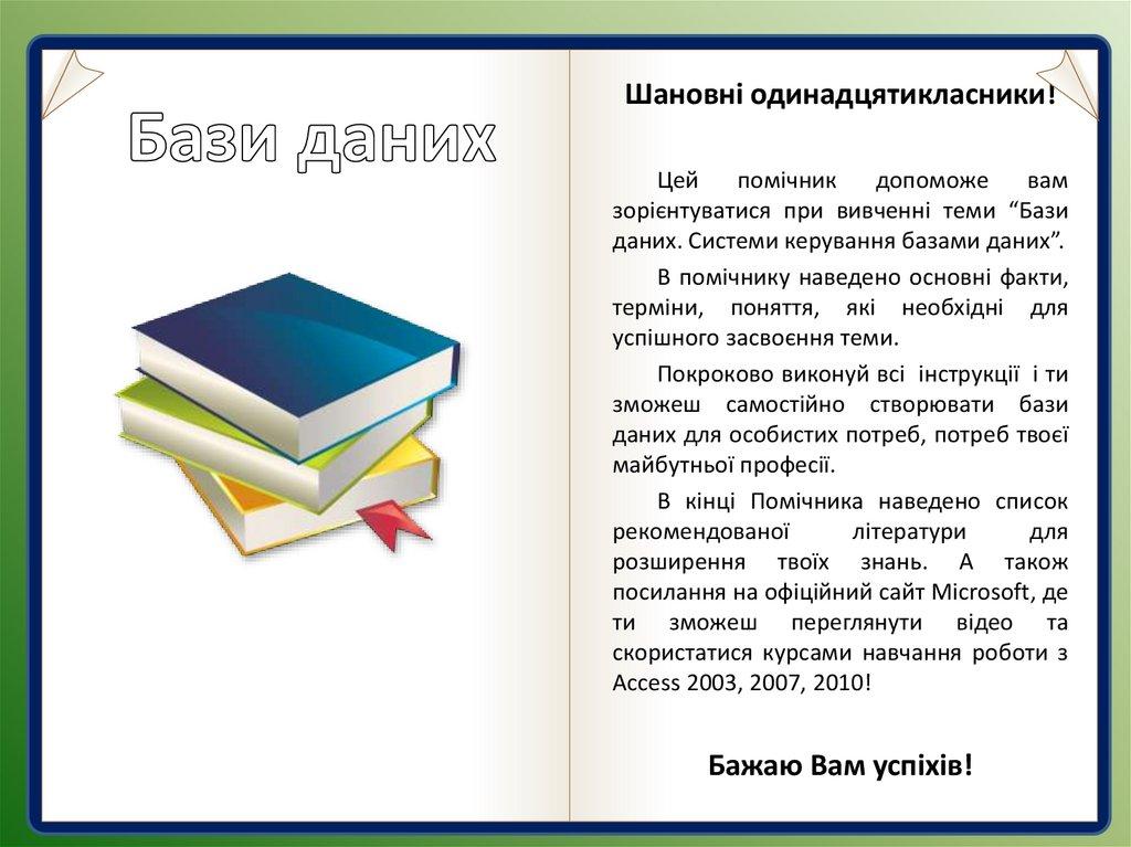 2. Інформатика. Бази даних. Системи управління базами даних. Microsoft Access: Теоретичні