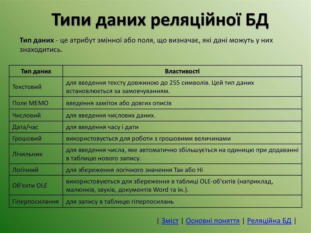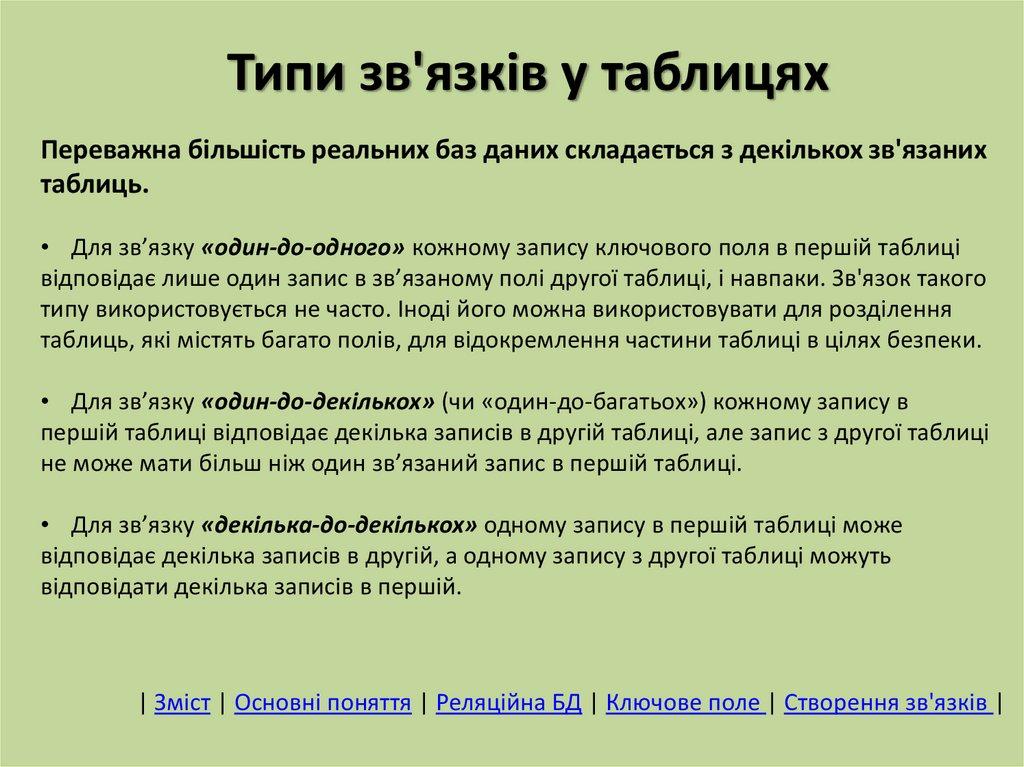 | Зміст | Основні поняття |СКБД MS Access | Access 2003 | Повернутися |