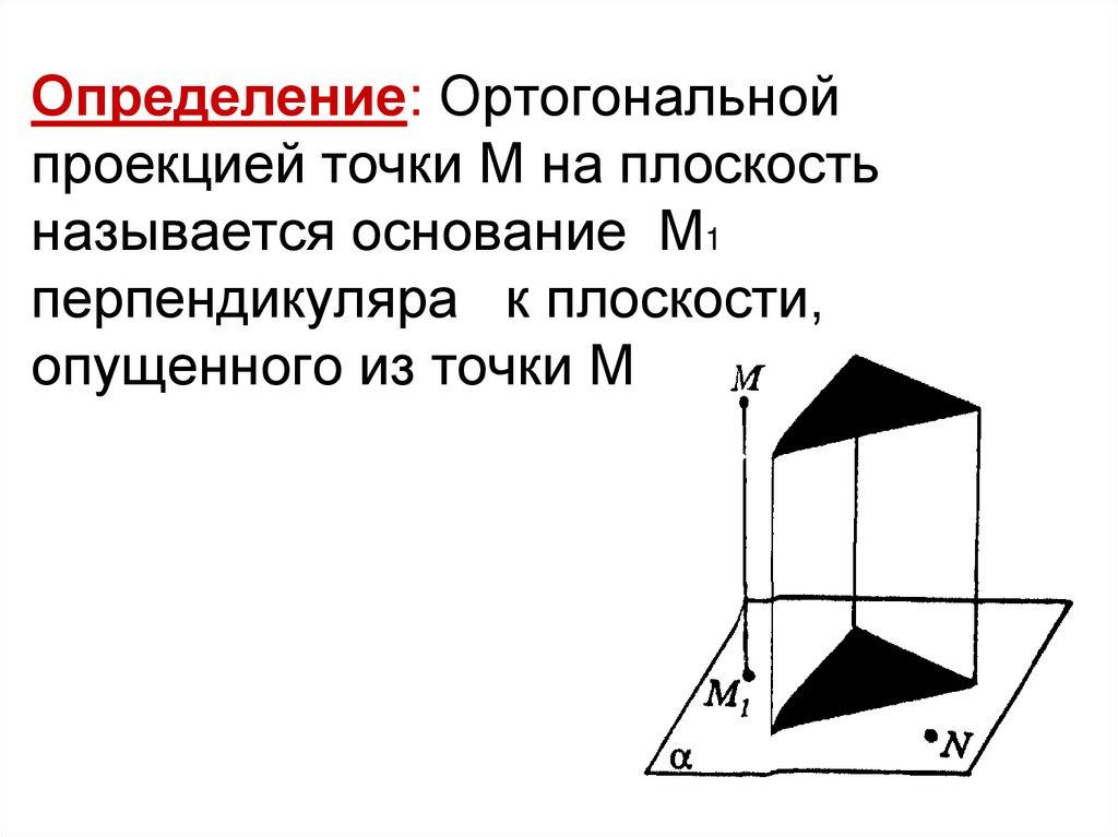 Определение: Ортогональнойпроекцией точки М на плоскость