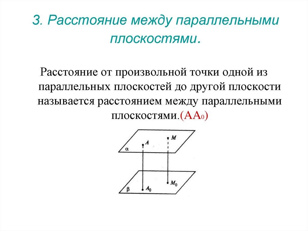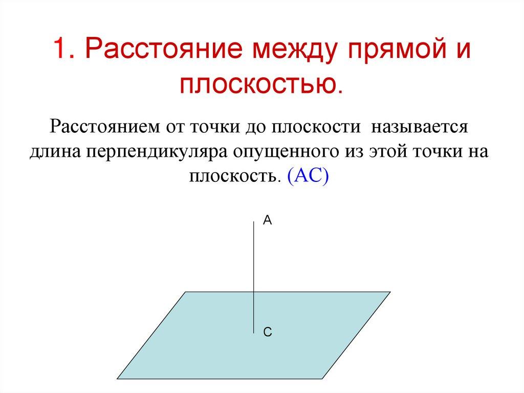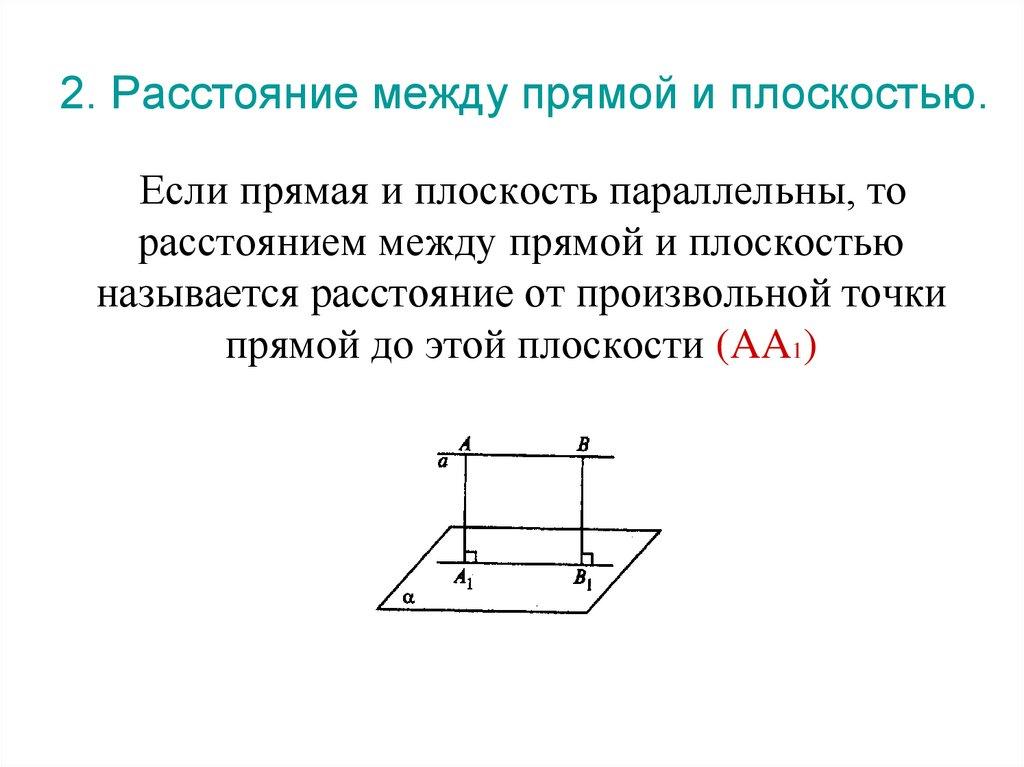 2. Расстояние между прямой и плоскостью.Если прямая и плоскость параллельны, то
