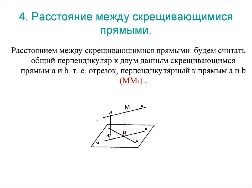 прямым а и b, т. е. отрезок, перпендикулярный к прямым а и b