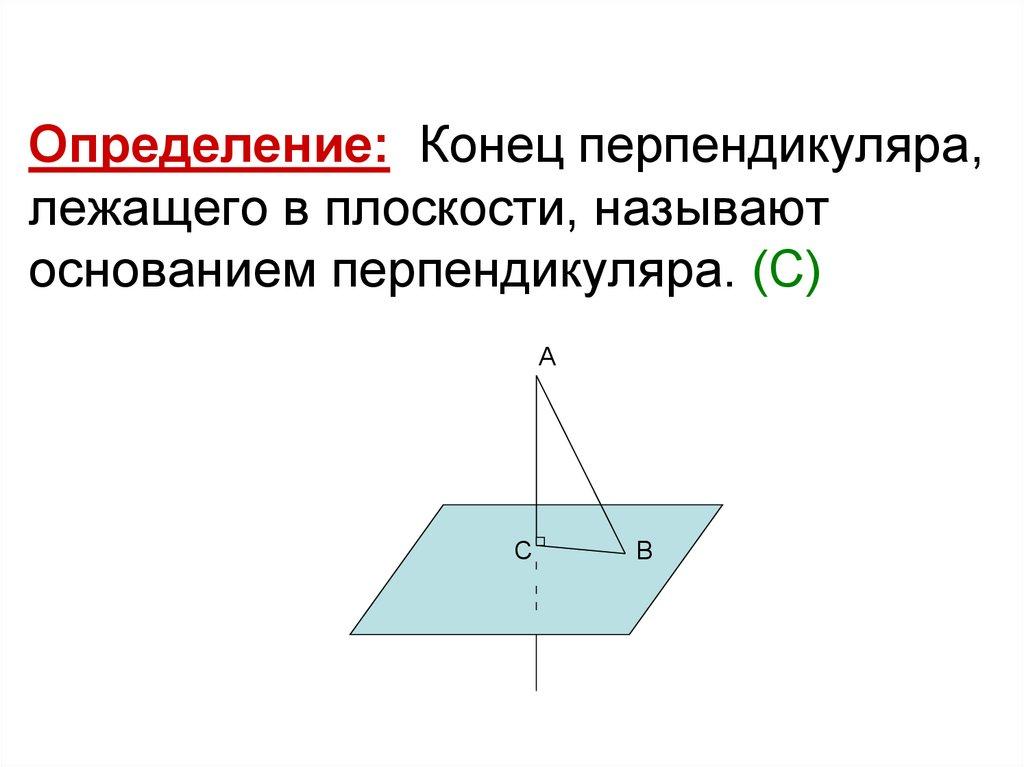 Определение: Конец перпендикуляра,лежащего в плоскости, называют