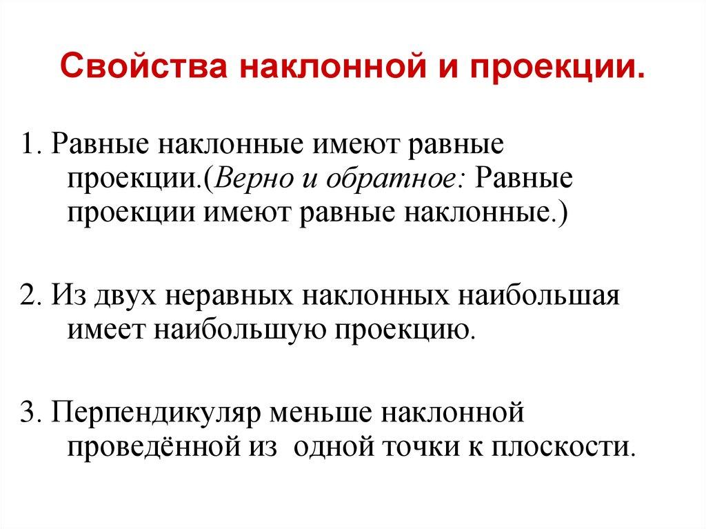 Свойства наклонной и проекции.1. Равные наклонные имеют равные