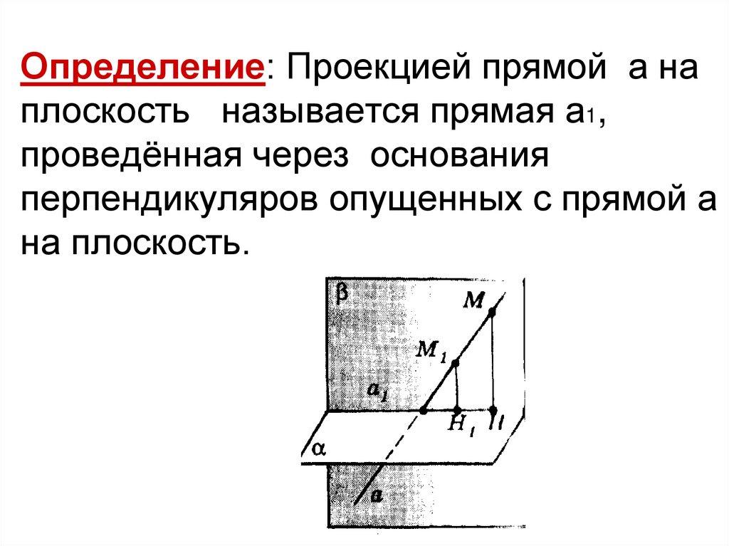 Определение: Проекцией прямой а наплоскость называется прямая а1,