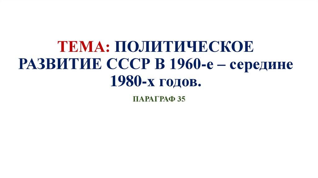 ТЕМА: ПОЛИТИЧЕСКОЕ РАЗВИТИЕСССР В 1960-е – середине 1980-х годов.