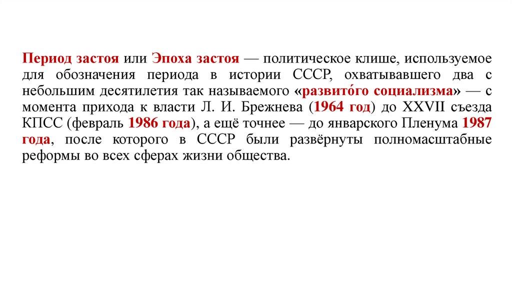 момента прихода к власти Л. И. Брежнева (1964 год) до XXVII съезда