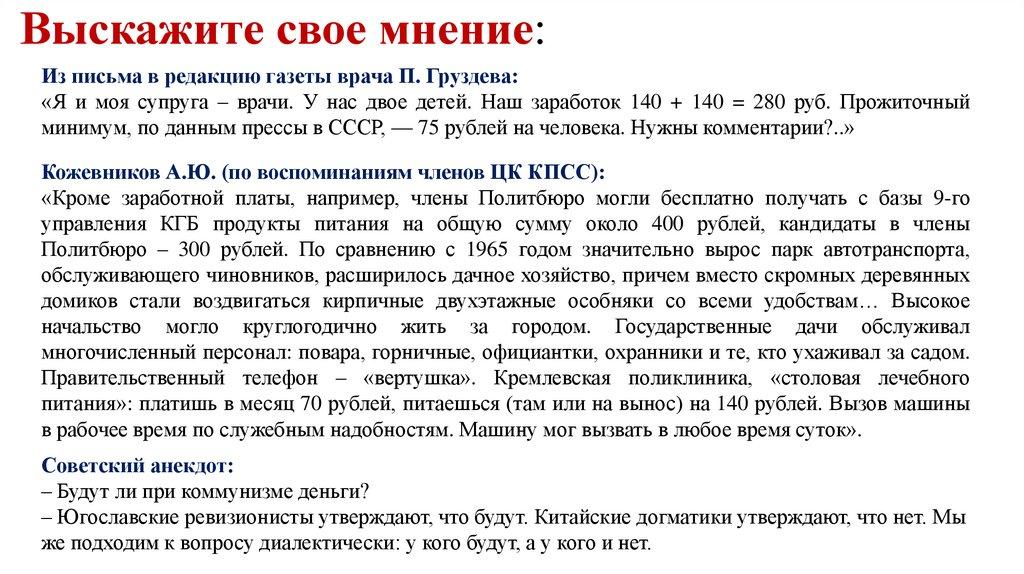 минимум, по данным прессы в СССР, — 75 рублей на человека. Нужны комментарии?..»