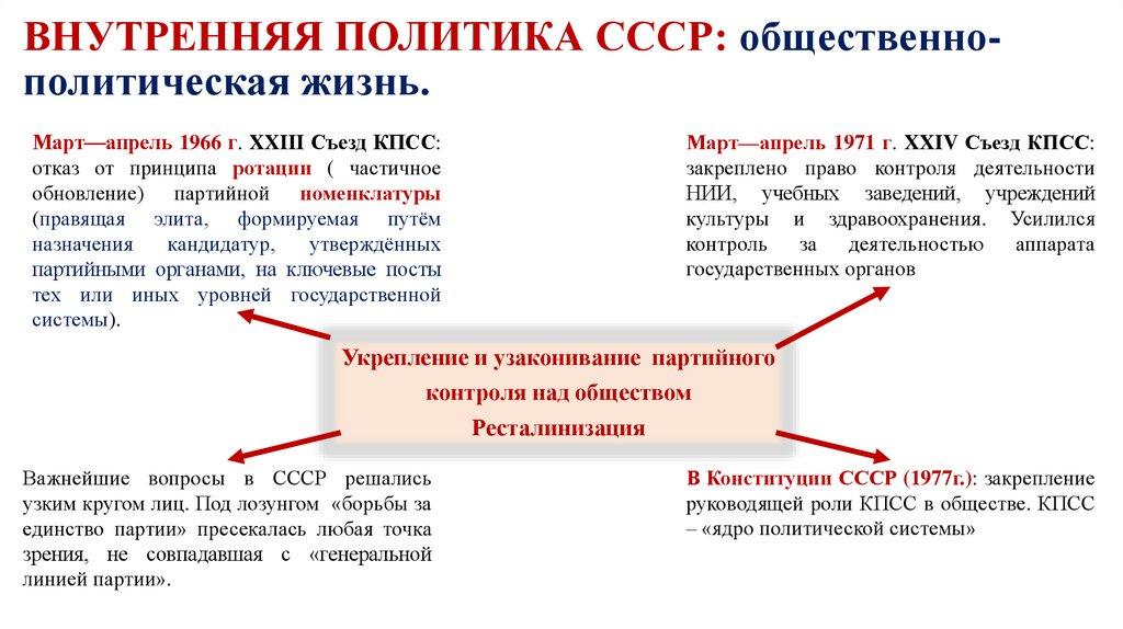 ВНУТРЕННЯЯ ПОЛИТИКА СССР: общественнополитическая жизнь.Март—апрель 1966 г. XXIII Съезд КПСС: