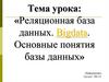 Реляционная база данных. Bigdata. Основные понятия базы данных