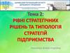 Рівні стратегічних рішень та типологія стратегій підприємства. Тема 2