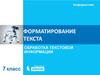 Форматирование текста. Обработка текстовой информации. (7 класс)