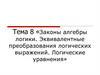 Законы алгебры логики. Эквивалентные преобразования логических выражений. Логические уравнения. Тема 8