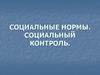 Социальные нормы. Социальный контроль